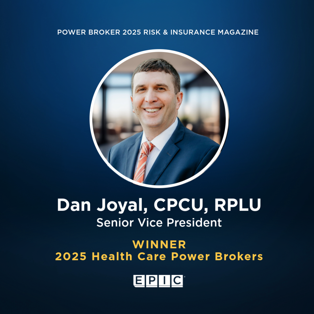 “Dan is a terrific colleague with a deep healthcare knowledge that he delivers passionately to our clients every day,” said Marc Kunney, President of Risk Management/National Specialty at EPIC. “We are delighted about the honor that he has received. Dan shines as a fierce client advocate, a consultative advisor, and an instrumental part of our firm.”